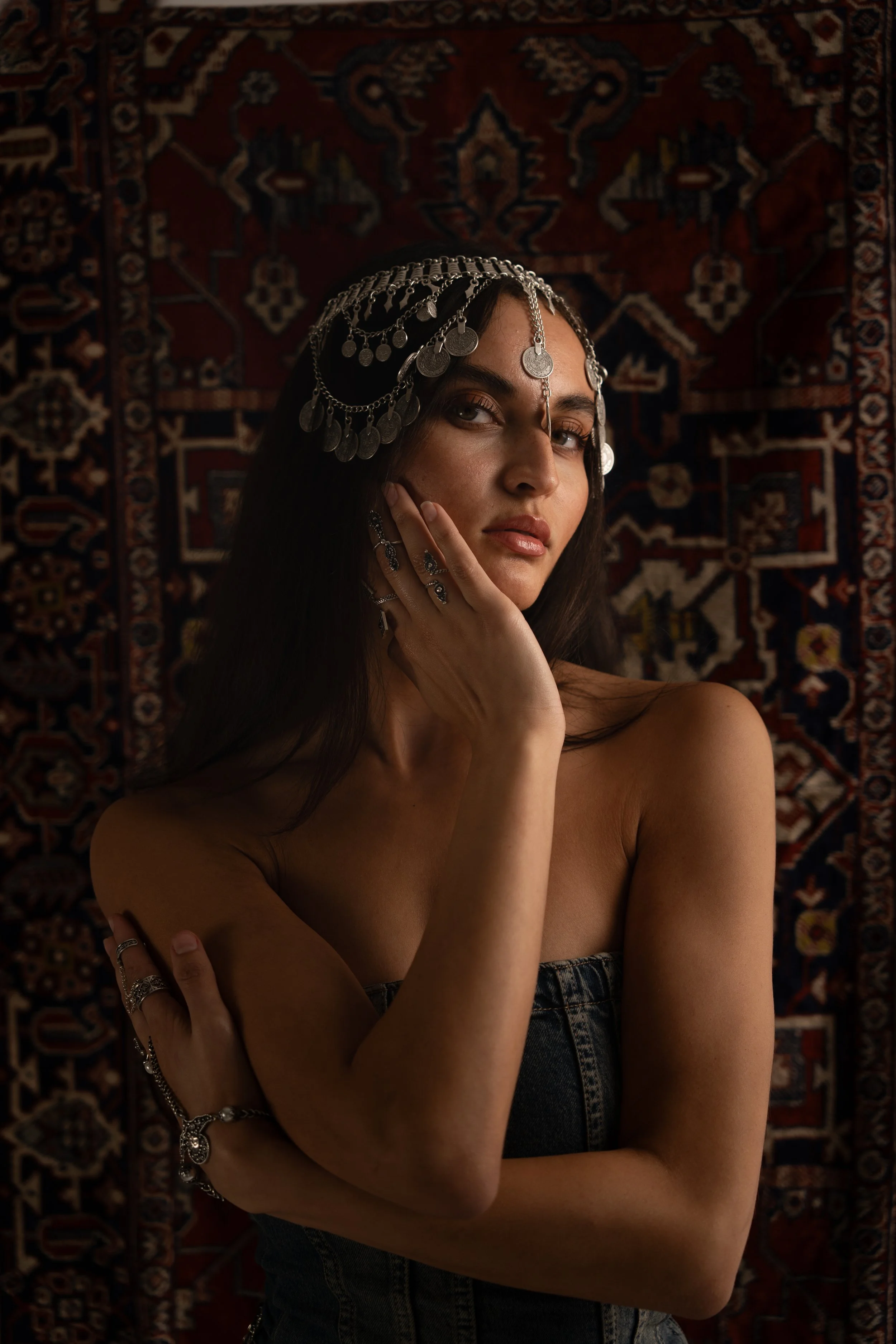 This editorial shoot was my first chance to bring my vision for Armenian-inspired jewelry to life—mixing timeless tradition with a modern twist. The pieces, steeped in Armenian heritage, were styled to feel fresh and bold, blending perfectly with contemporary fashion. I wanted to show how the rich, intricate details of traditional jewelry could effortlessly complement sleek, modern outfits.